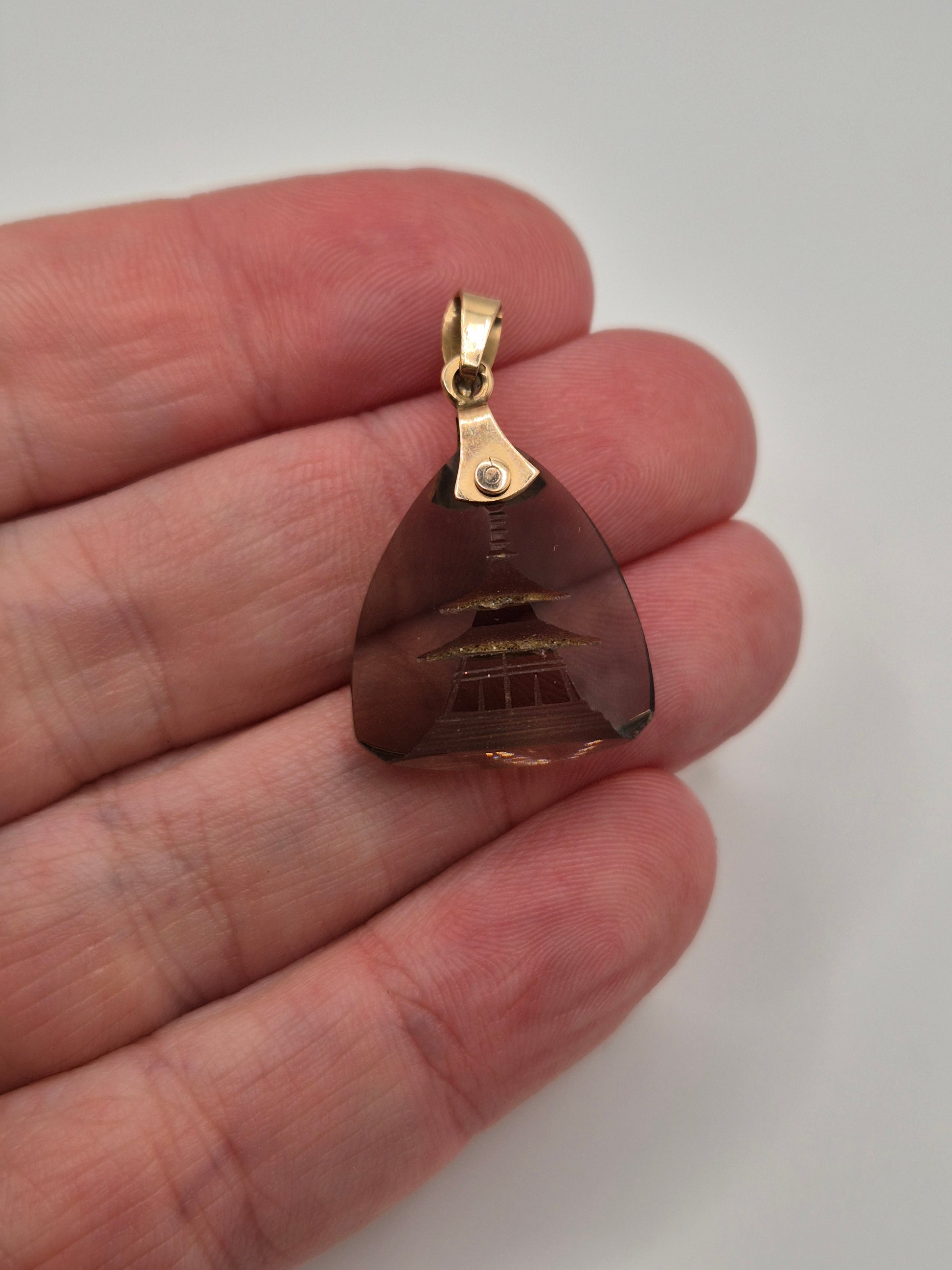 14ct gold carved quartz pendant