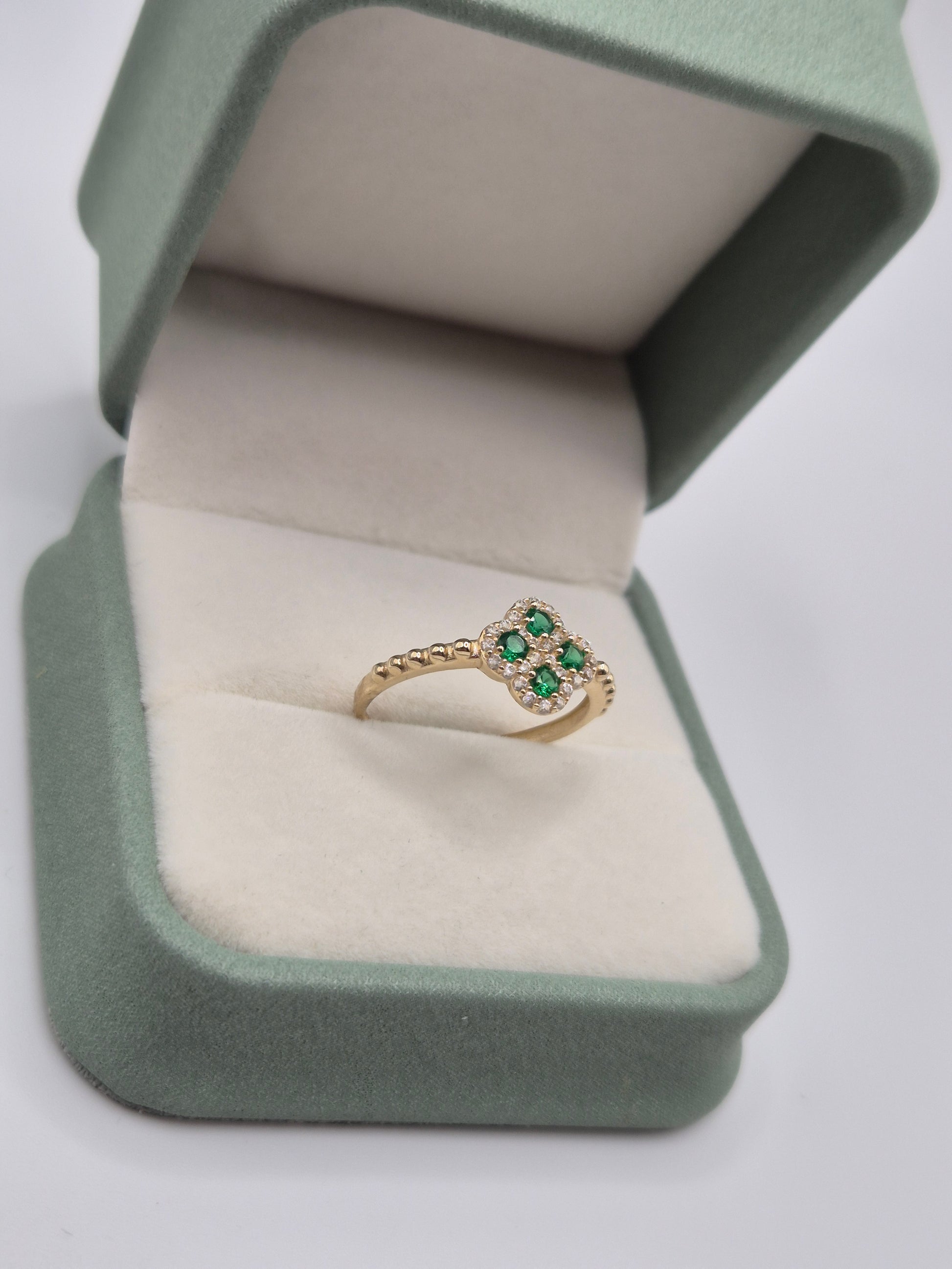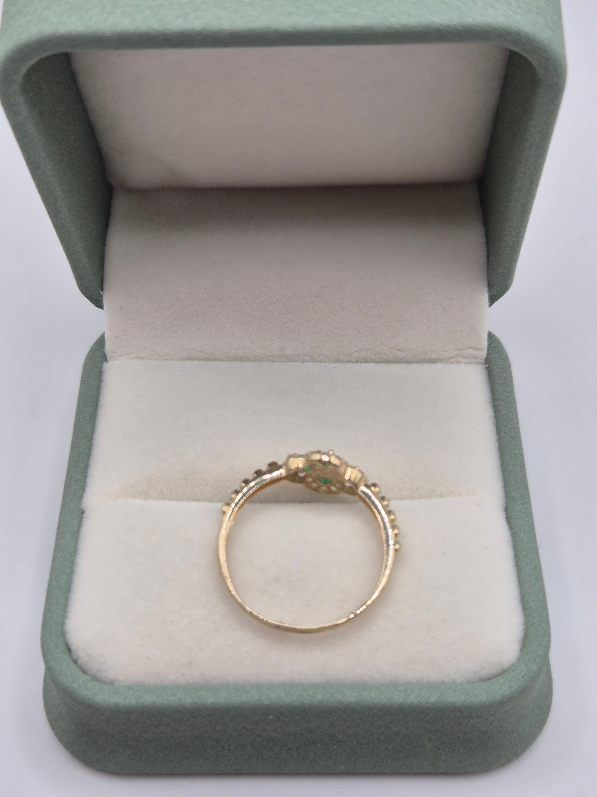 14ct gold simulated emerald and zircon ring