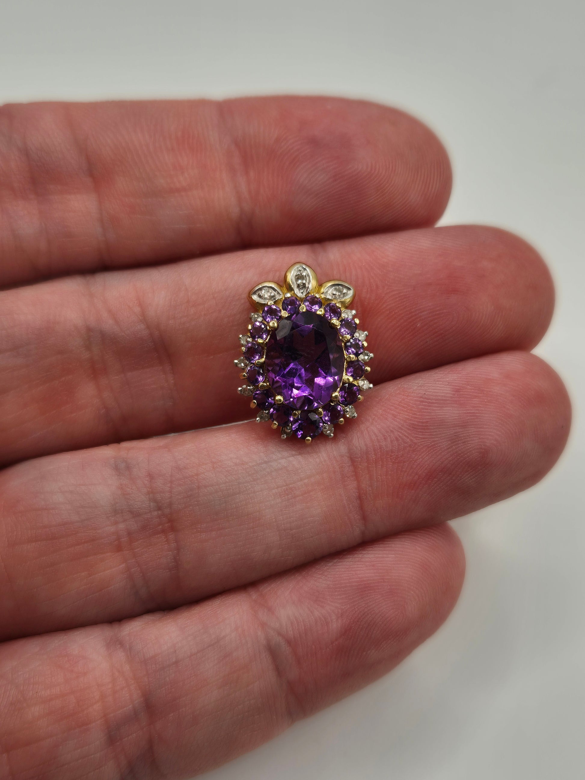 9ct gold amethyst and diamond pendant