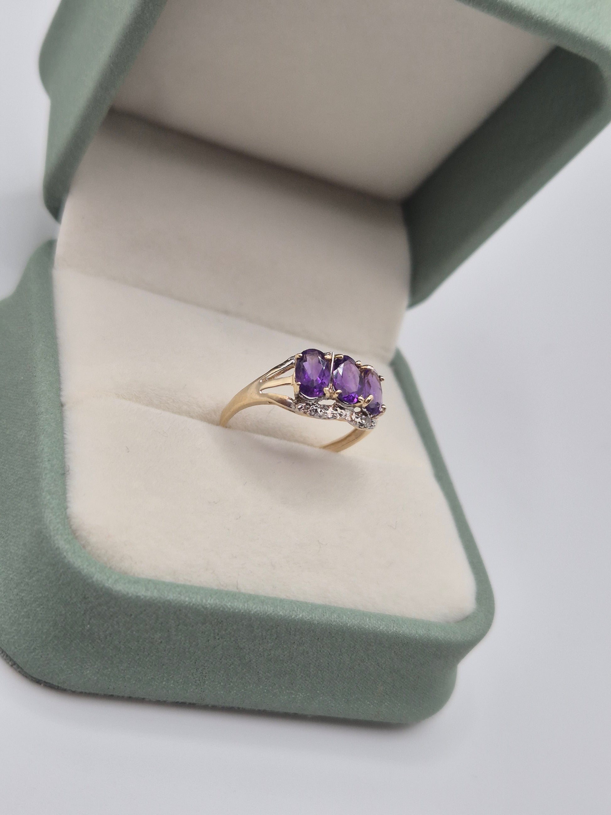 9ct gold amethyst and diamond ring
