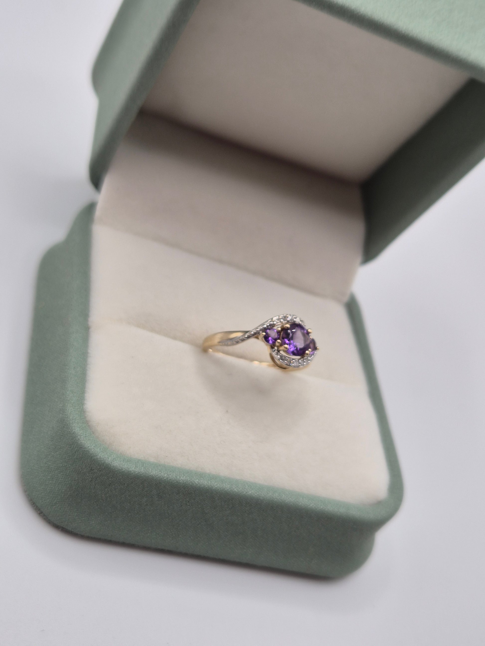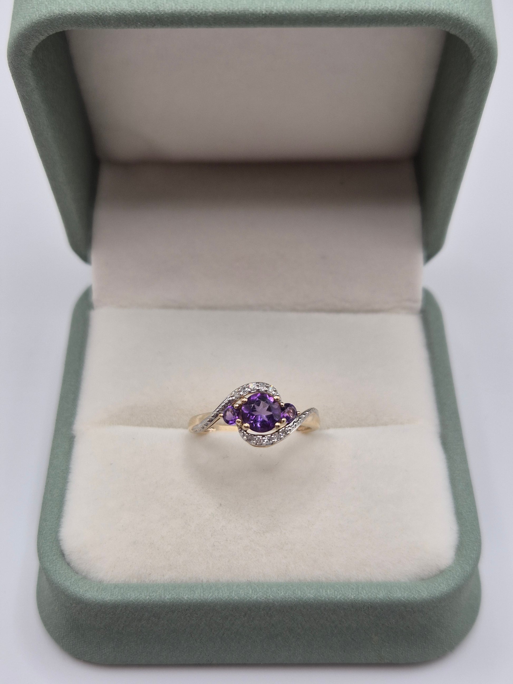 9ct gold amethyst and diamond ring