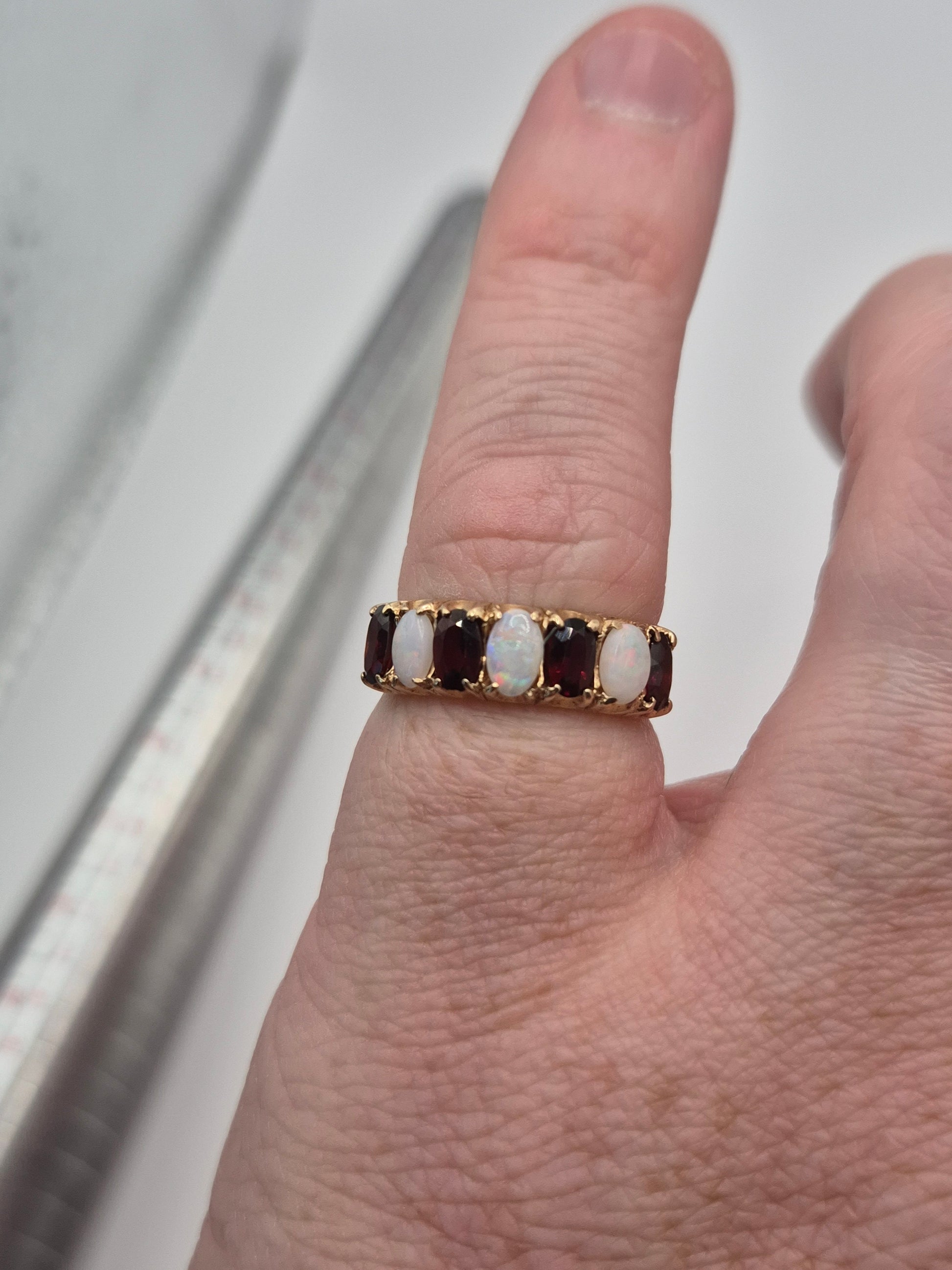 9ct gold opal and garnet ring