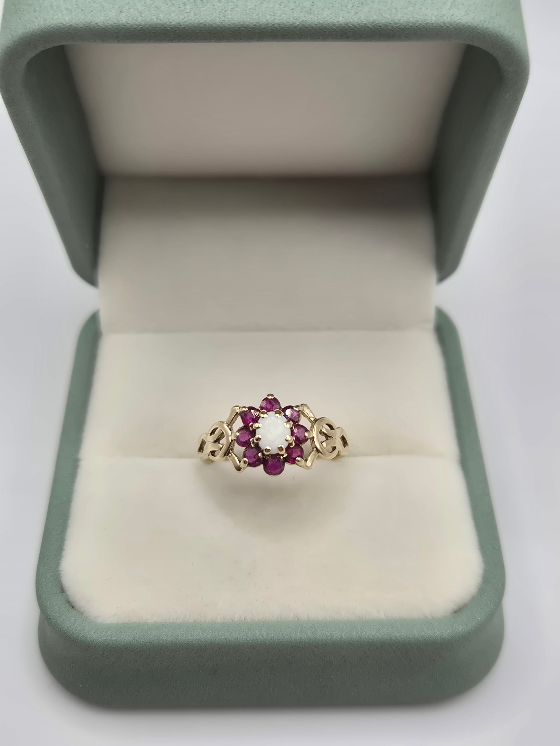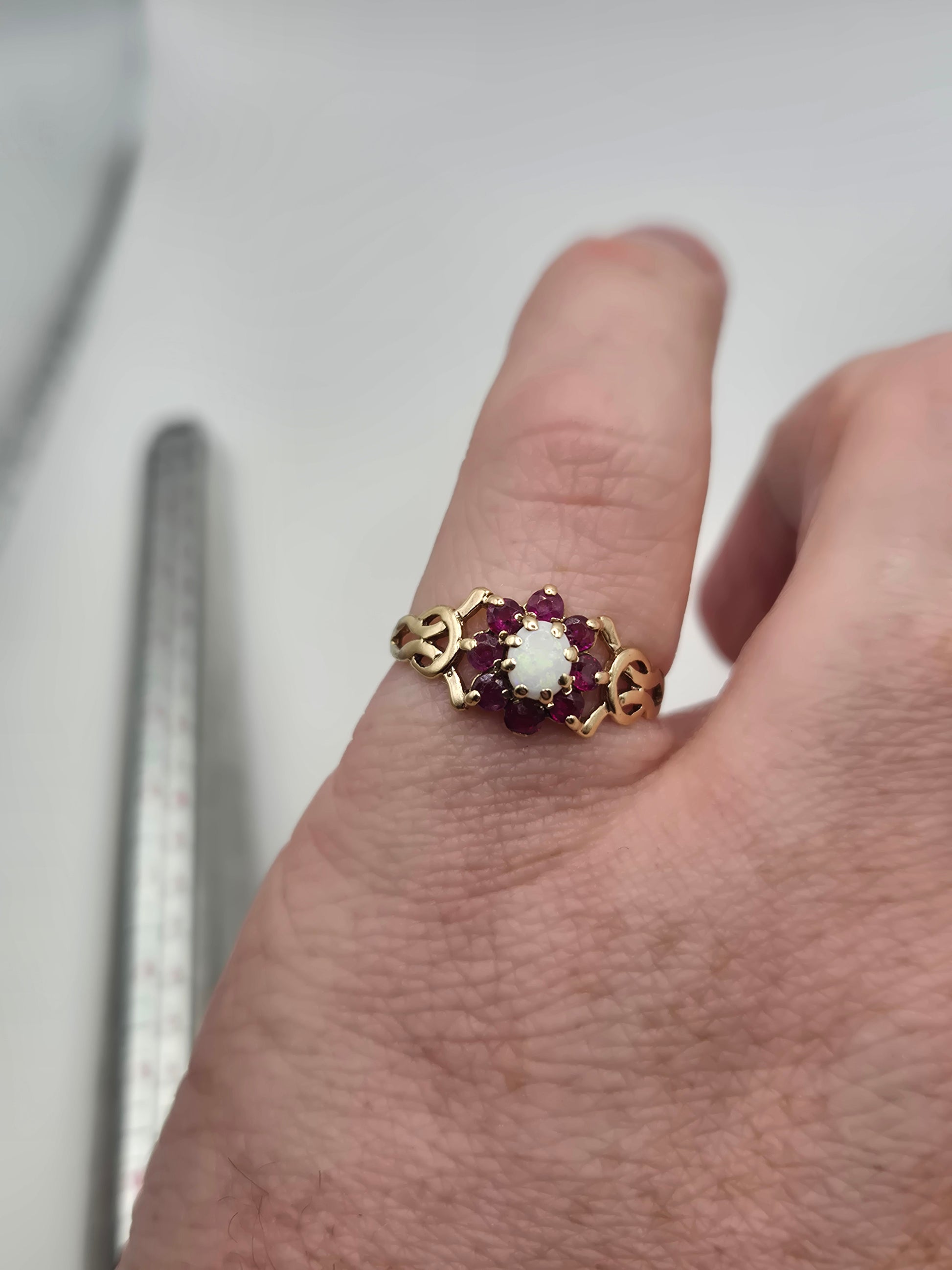 9ct gold opal and ruby ring