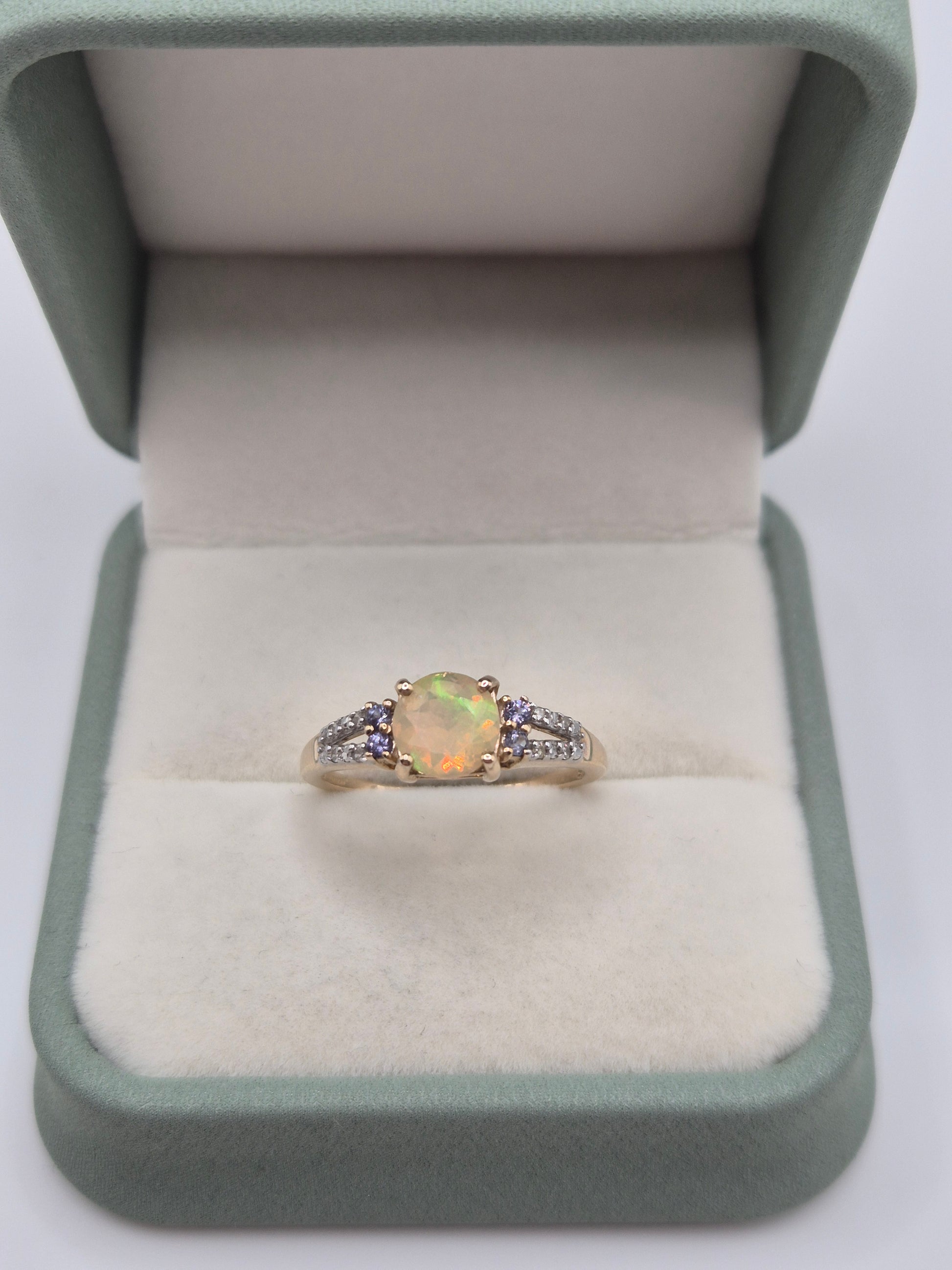 9ct gold opal, colour change garnet and diamond ring