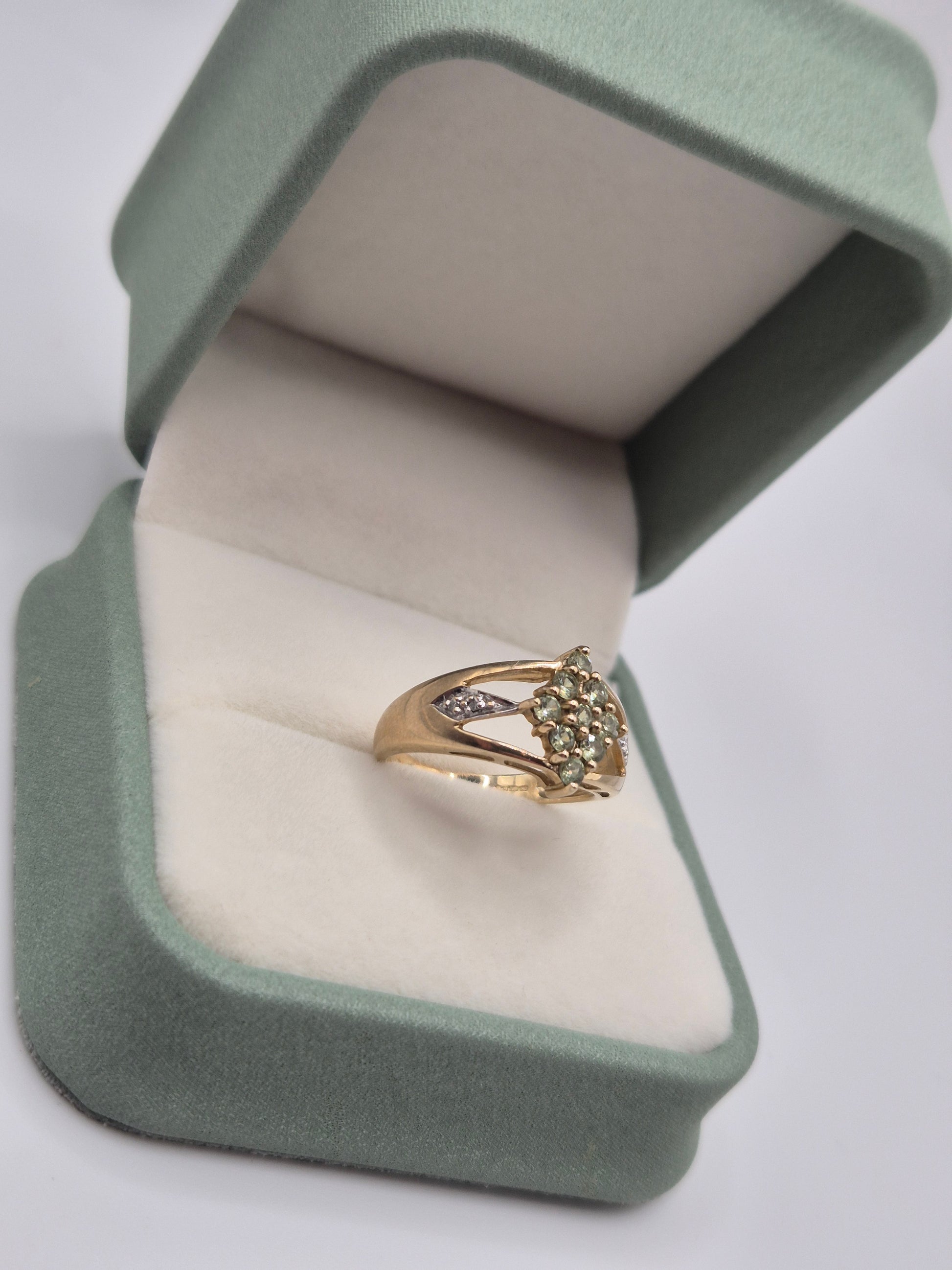 9ct gold peridot and diamond ring