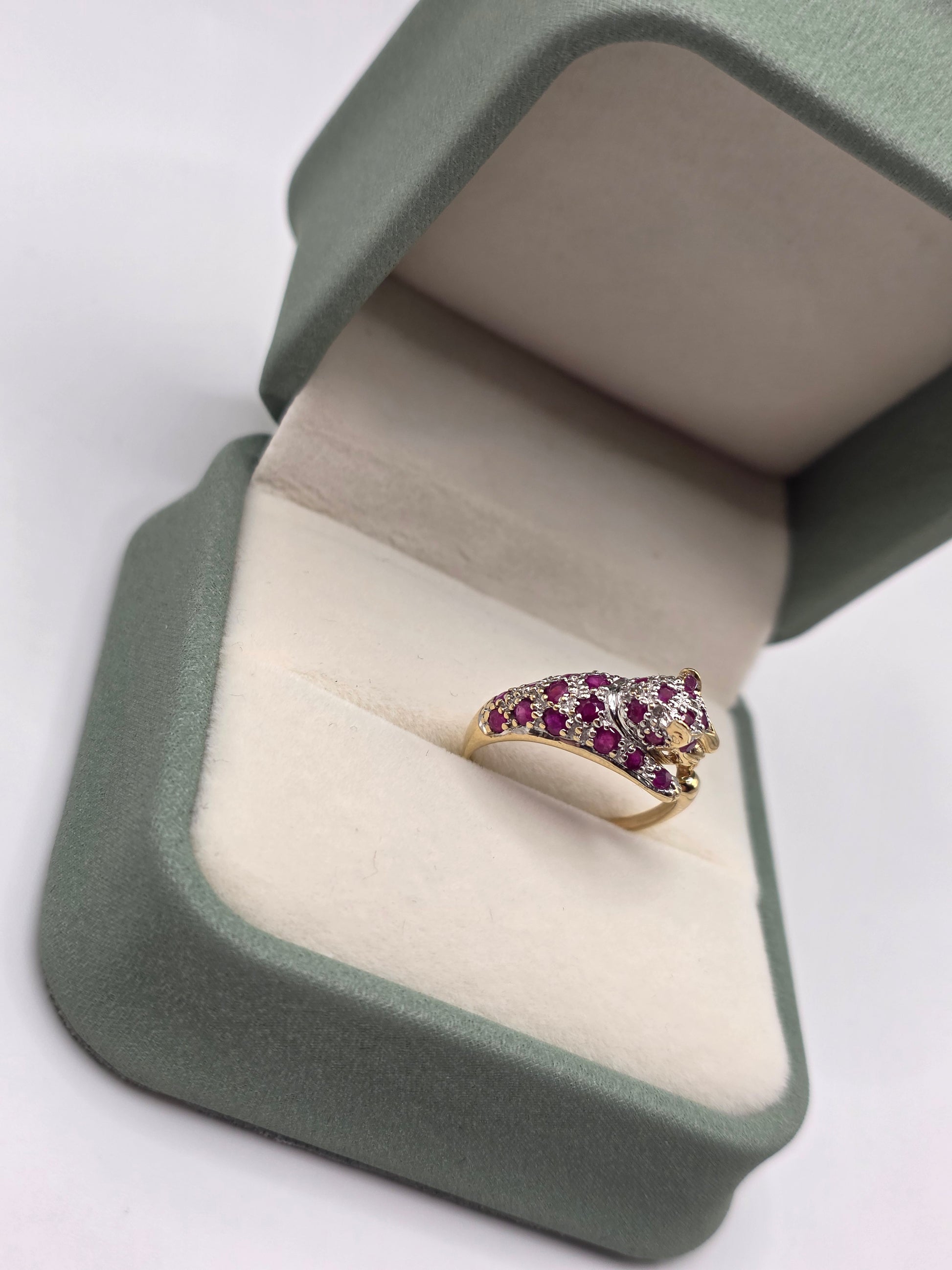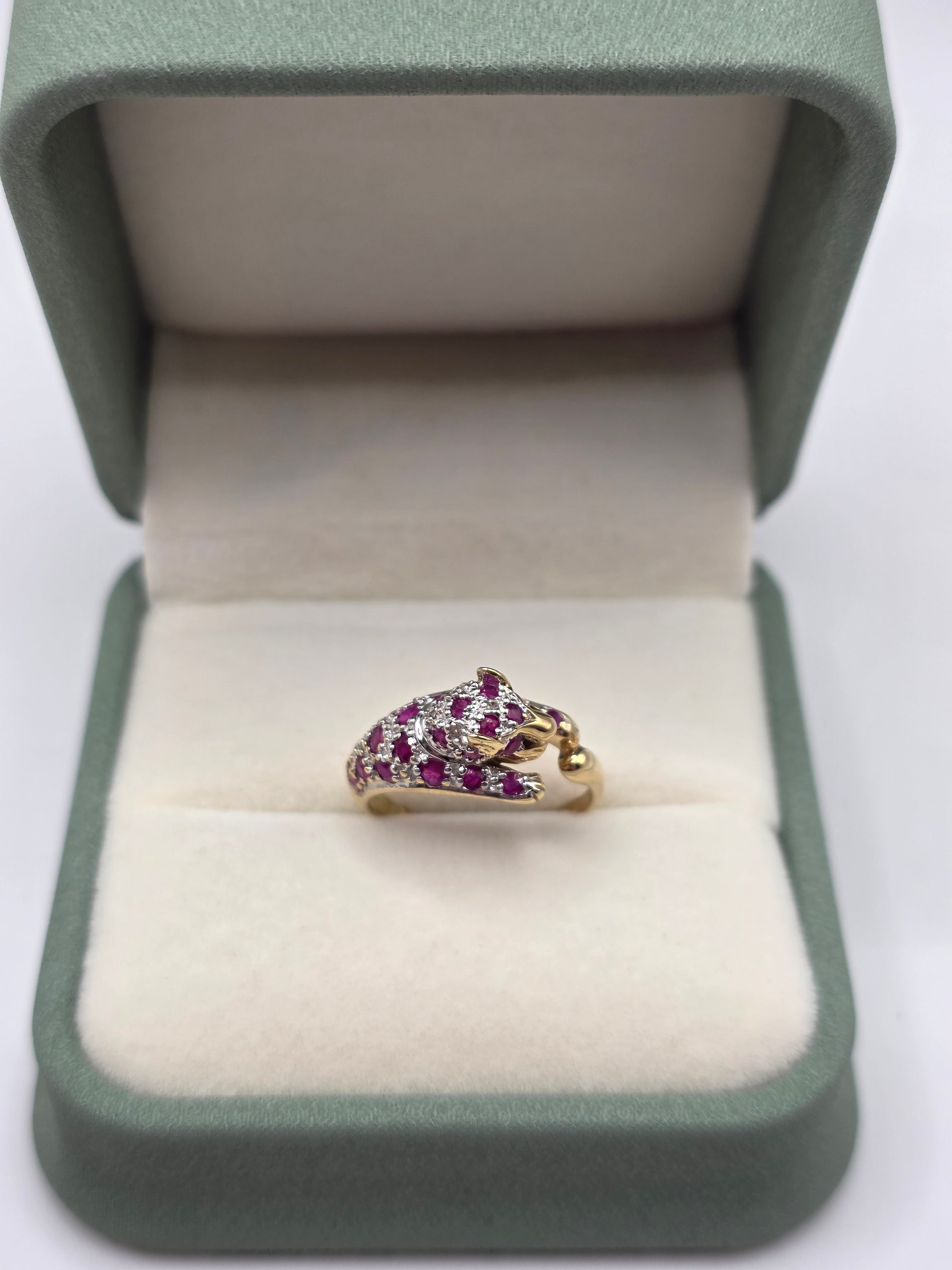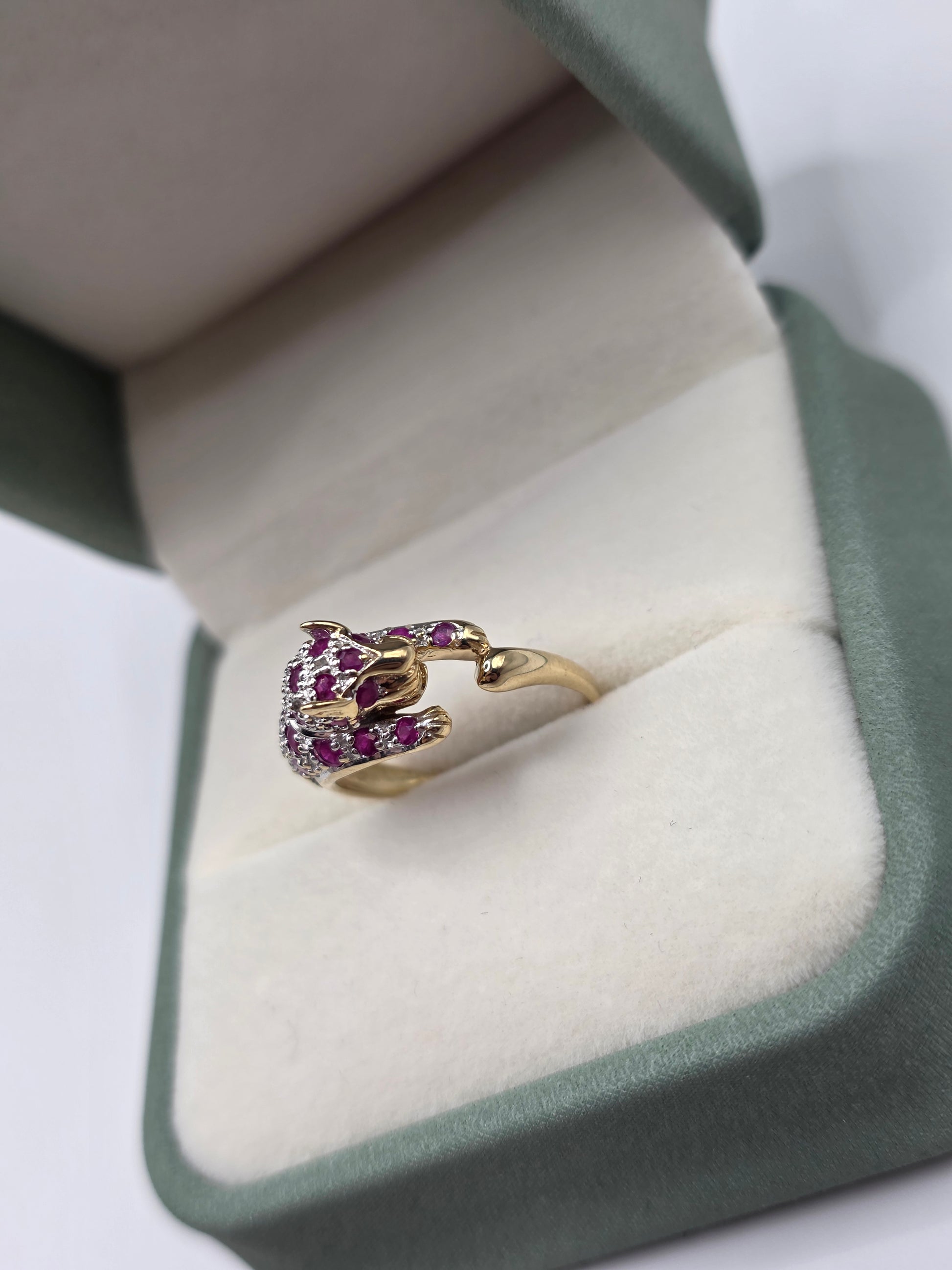 9ct gold Ruby and diamond panther ring