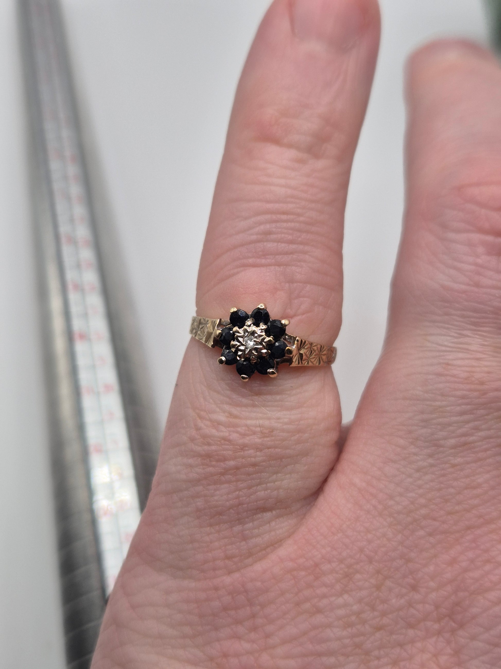 9ct gold sapphire and diamond ring