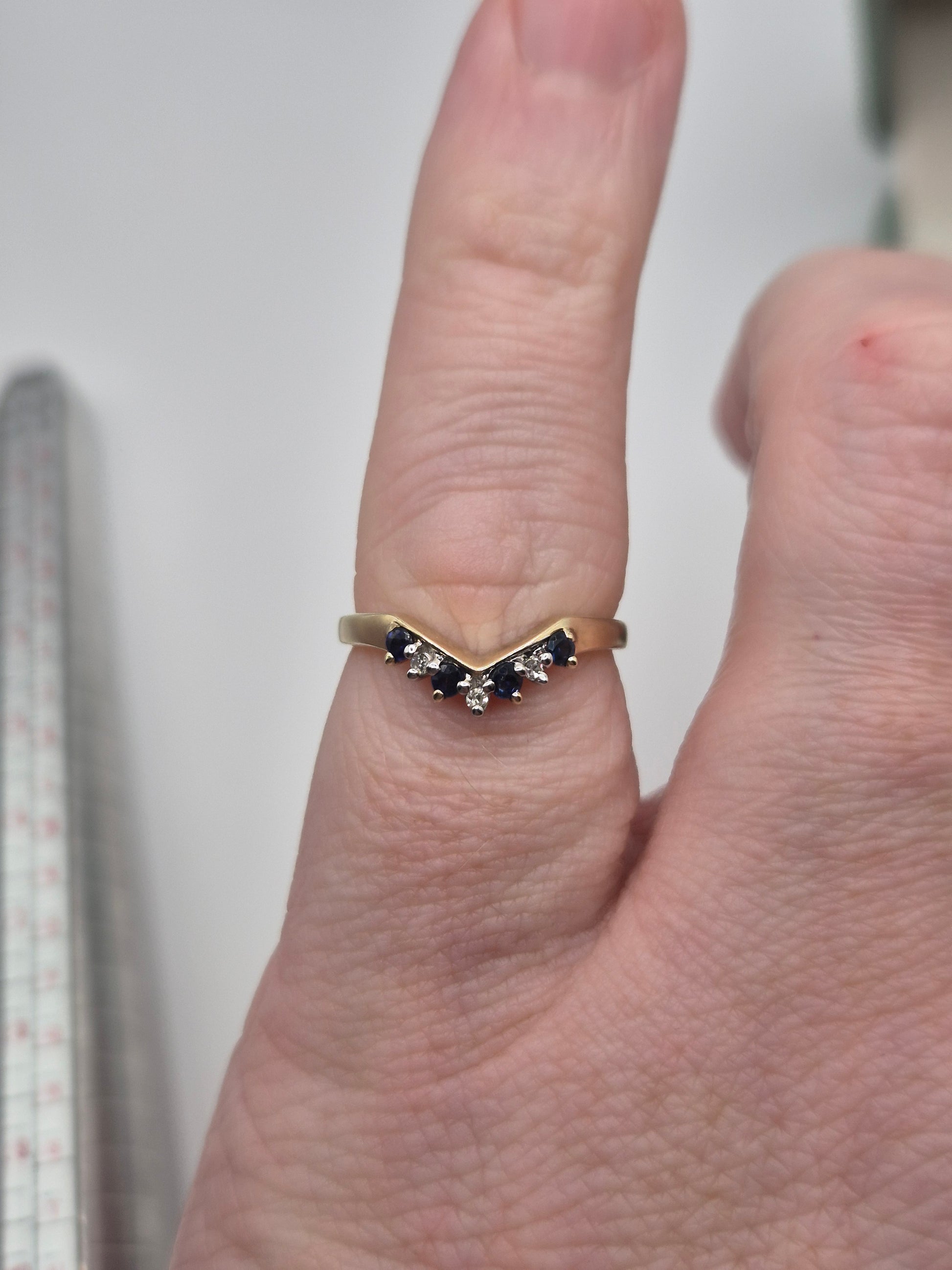 9ct gold sapphire and diamond wishbone ring
