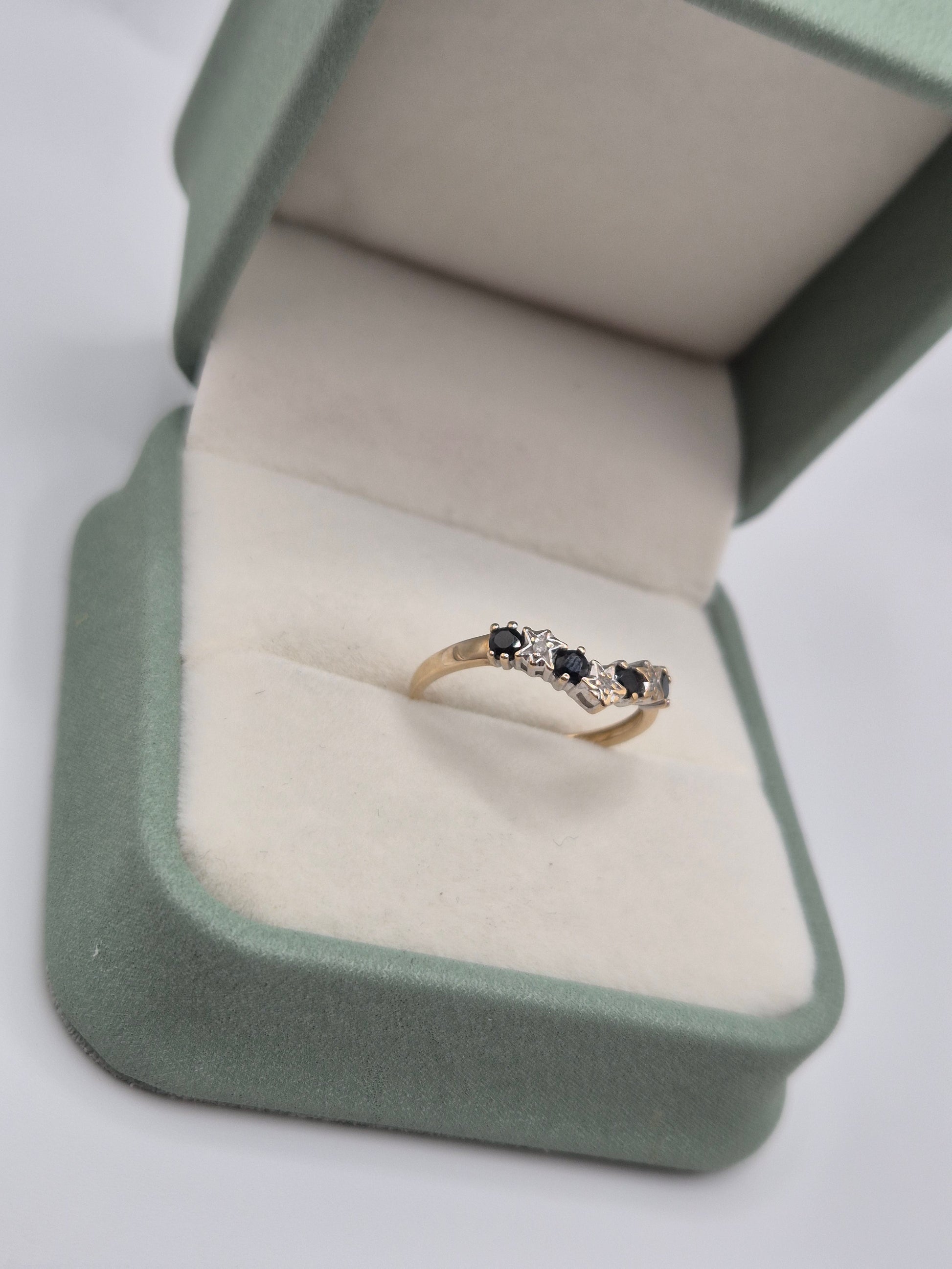 9ct gold sapphire and diamond wishbone ring