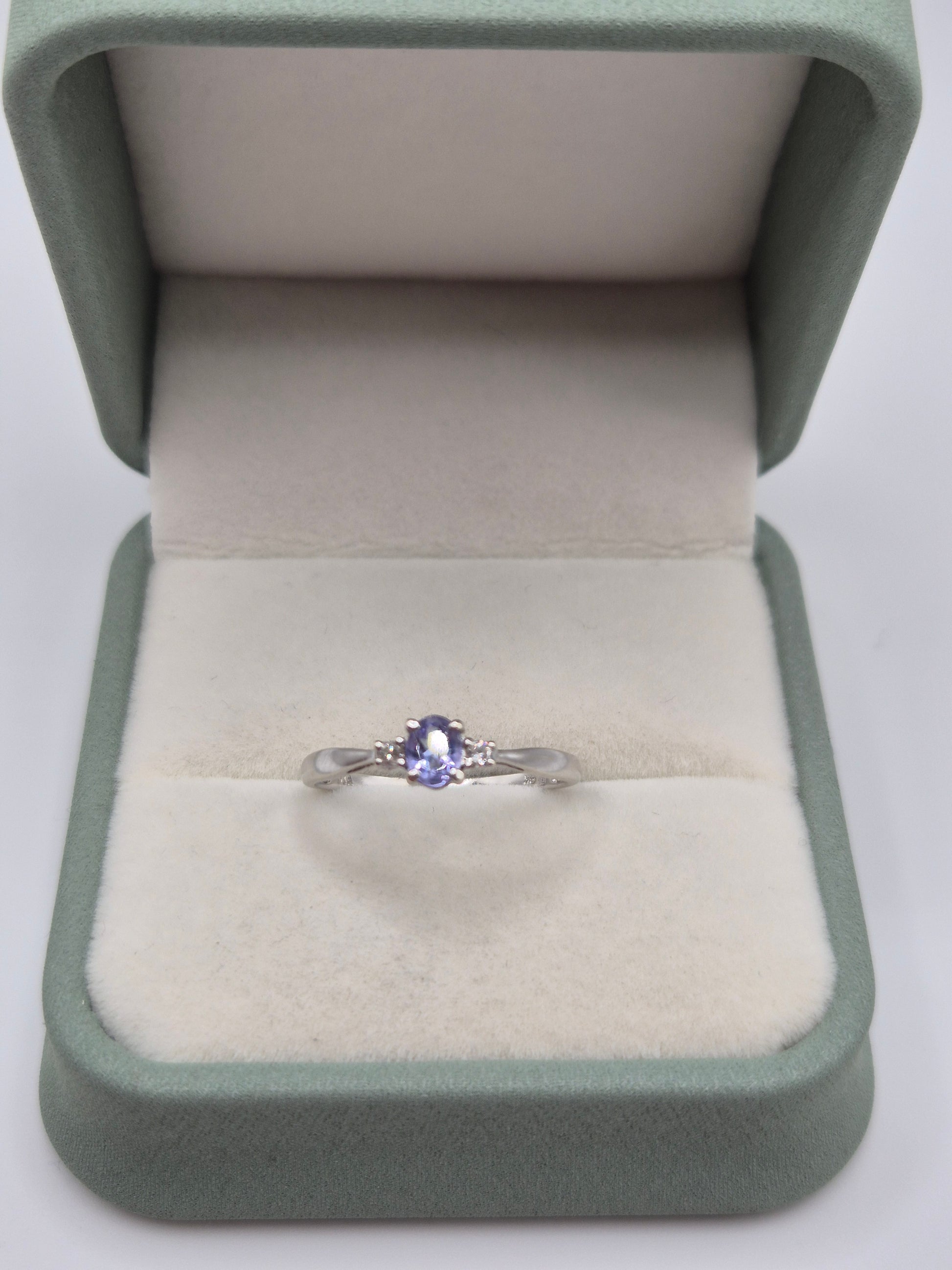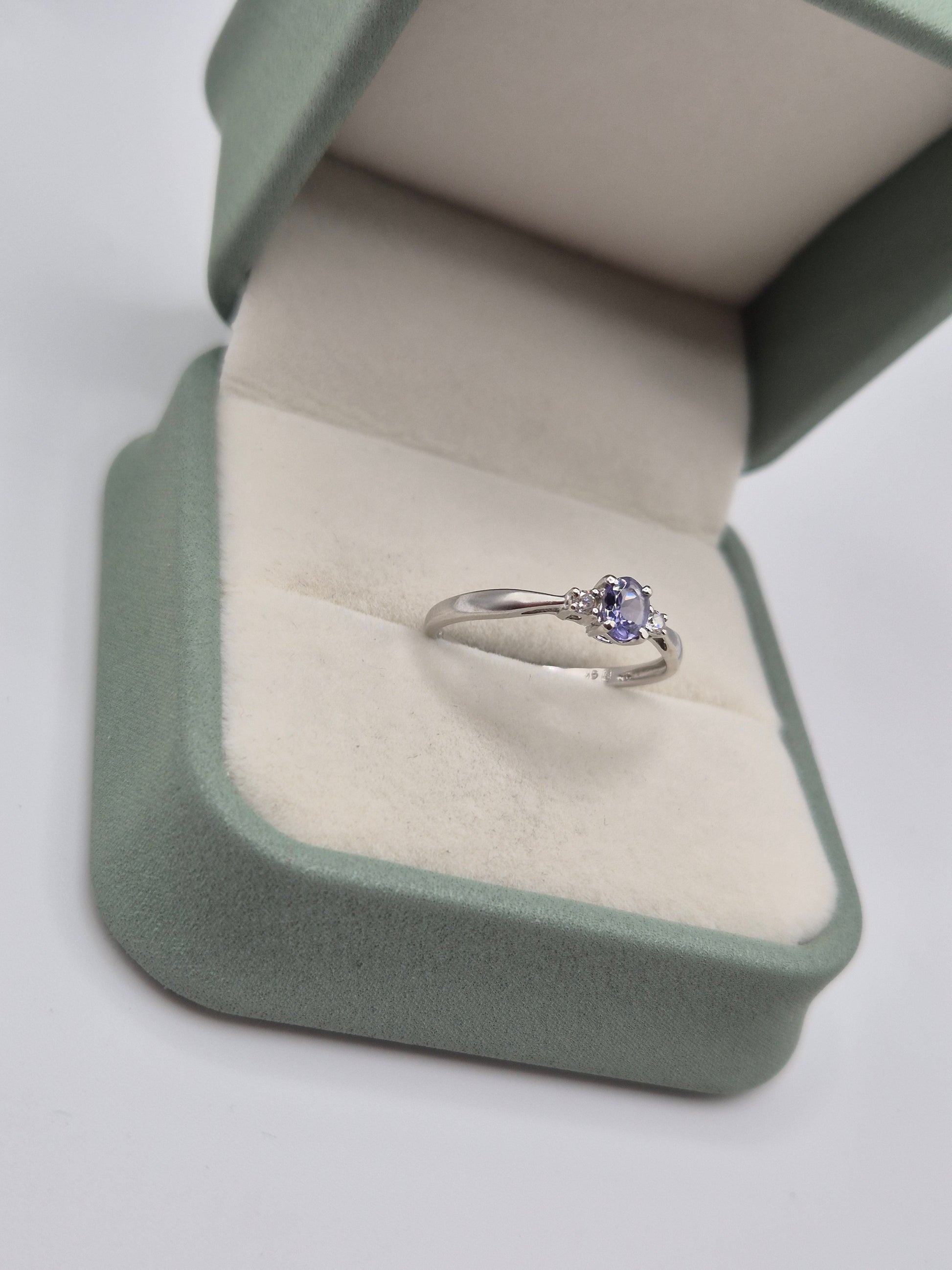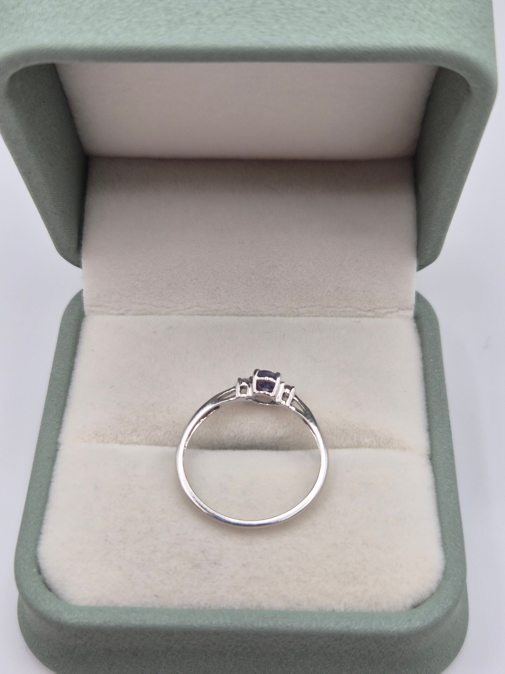 9ct white gold tanzanite and diamond ring