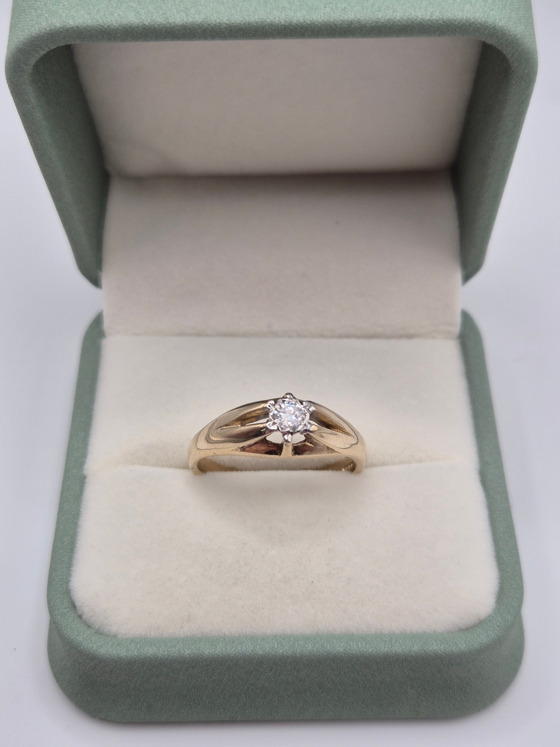 Heavy 9ct gold diamond gypsy ring